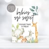 Printable Baby Shower Favor Sign, Babies Are Sweet Please Take a Treat, Jungle Animal Theme