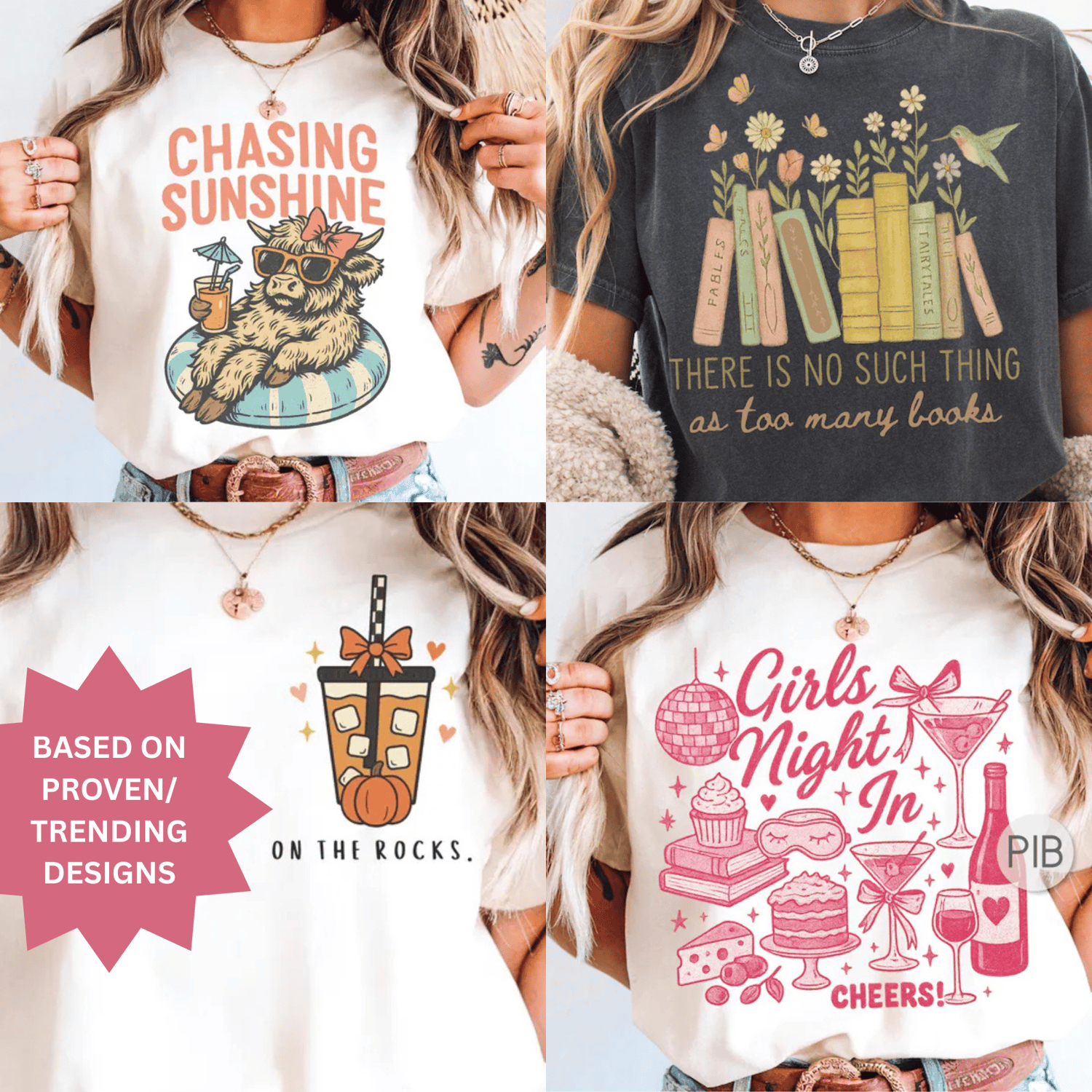 I do the trend research. I do the design work. You get a huge bundle of popular, professionally-made PNG/SVG designs every single month. (with access to all past designs)